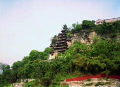 船过奉节,顺流而下,遥望瞿塘峡口,但见长江北岸高耸的山头上,有一幢幢飞檐楼阁,掩映在郁郁葱葱的绿树丛中,这就是三峡的著名游览胜地白帝城。