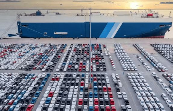 图为港口的新能源汽车