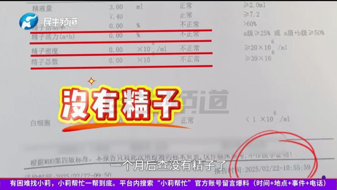 随后,他再次前往该医院检查,结果显示其精子量正常!