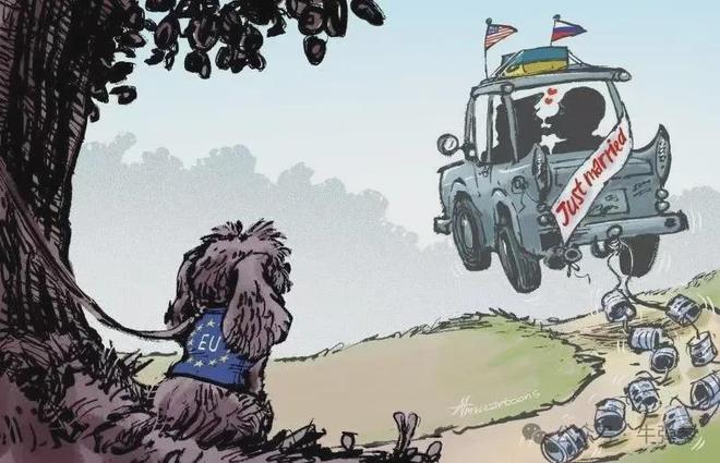 德韦弗以婚姻作为比喻,更道尽了欧洲的屈辱感——欧洲还幻想着与美国是亲密爱人,哪知道自己却被频频家暴,被揍得鼻青脸肿、满地找牙。