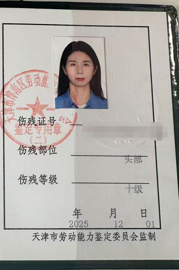 红星新闻此前报道,2025年12月1日,天津市津南区劳动能力鉴定委员会出具的《劳动能力鉴定结论书》显示:崔丽丽因2023年9月23日创伤性事件致创伤后应激障碍(PTSD),鉴定结论为“伤残十级”。