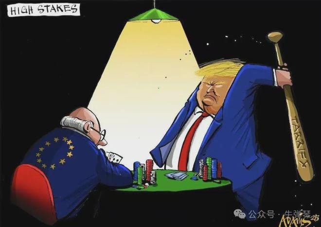 特朗普对欧洲挥舞关税大棒 漫画图