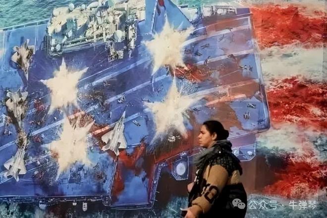 我看到,还有海报展示美国航母被摧毁的场景,文章的标题则是:“霸权的葬礼,美国决定攻击伊朗将是一场战略自杀”。
